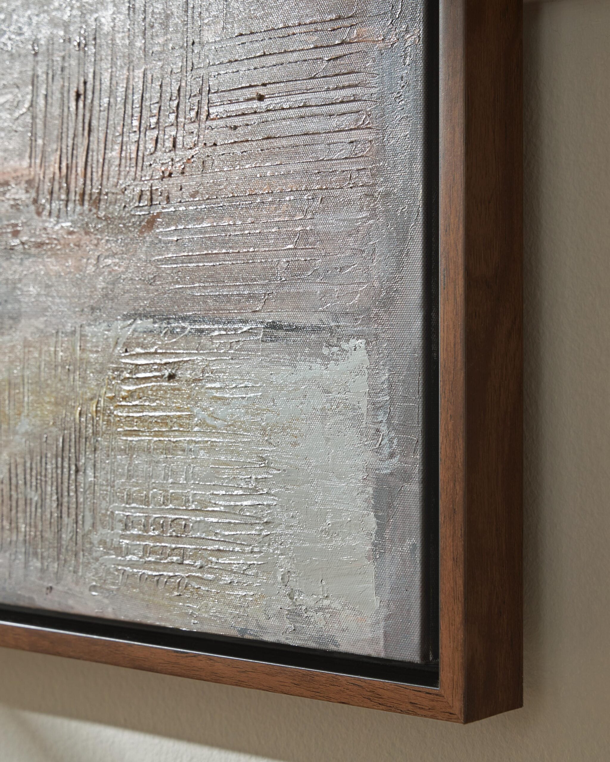 Muted tones make a big visual impact in this wall art. Exuding a modern sensibility, its hand painted abstract design brings dynamic visual interest to your decor while remaining subtle in style. Hang it solo as a statement piece, or make it the focal point of a chic gallery wall.