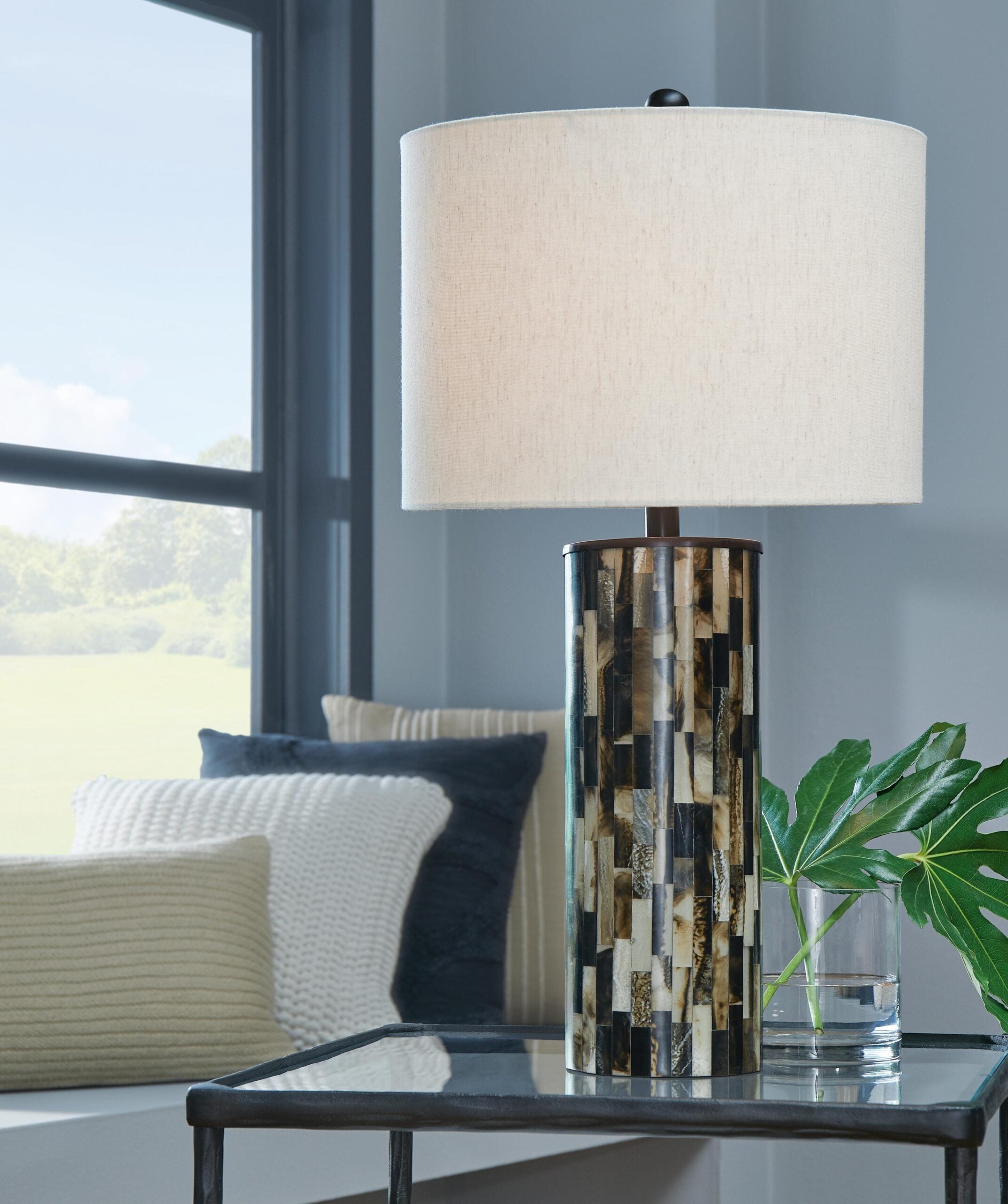 The mosaic patterned Ellford table lamp is a masterful interpretation of neutral hues. It prioritizes unique personality without sacrificing function. A decidedly contemporary addition to your decor, this eye-catching lamp sets the style tone for your home when staged in the entryway or living area.