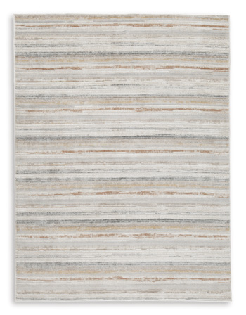 | Series Features | Machine woven, stripe design in shades of brown, gray, orange, yellow and ivory. 7mm pile. Polypropylene/polyester shrink yarn blend, backed with polyester. Spot clean only. Rug pad recommended. |