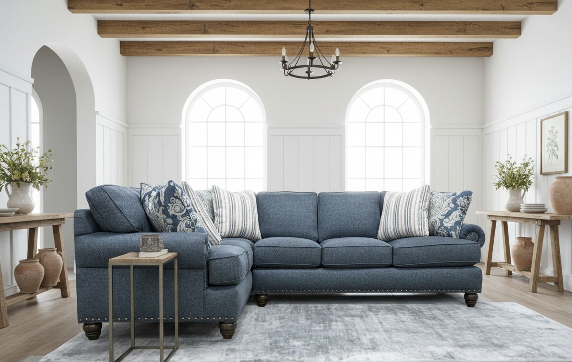 The C9 Romero Sectional with Pillows offers customizable comfort and timeless style, featuring plush seating, tailored upholstery, and a selection of accent pillows that bring warmth and personality to any living space.