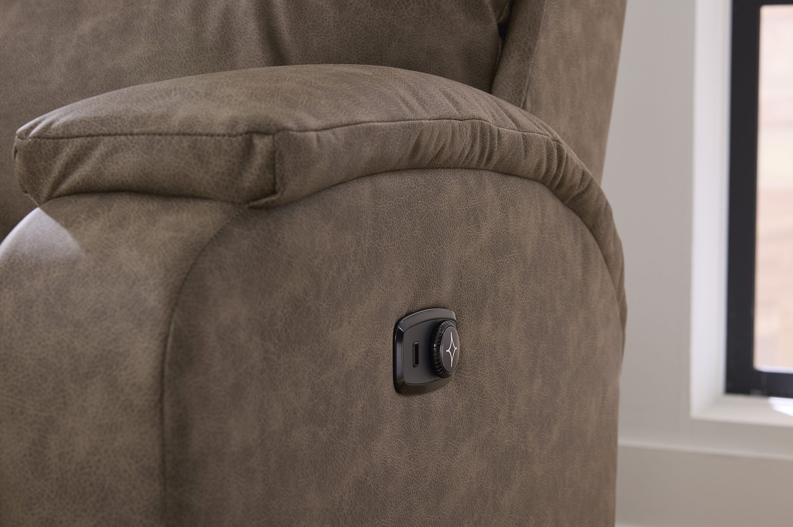Speaking of comfort, the Maverly is available with a traditional outside handle, or with the convenience of power. Enjoy the cutting-edge design of our easy-to-use Comfort Dial that also features a USB charging port. Effortlessly recline at the turn of a dial stopping at any of your favorite positions. Deluxe your comfort by enjoying the Tilt Headrest feature for optimal head and neck support while reading or watching TV.