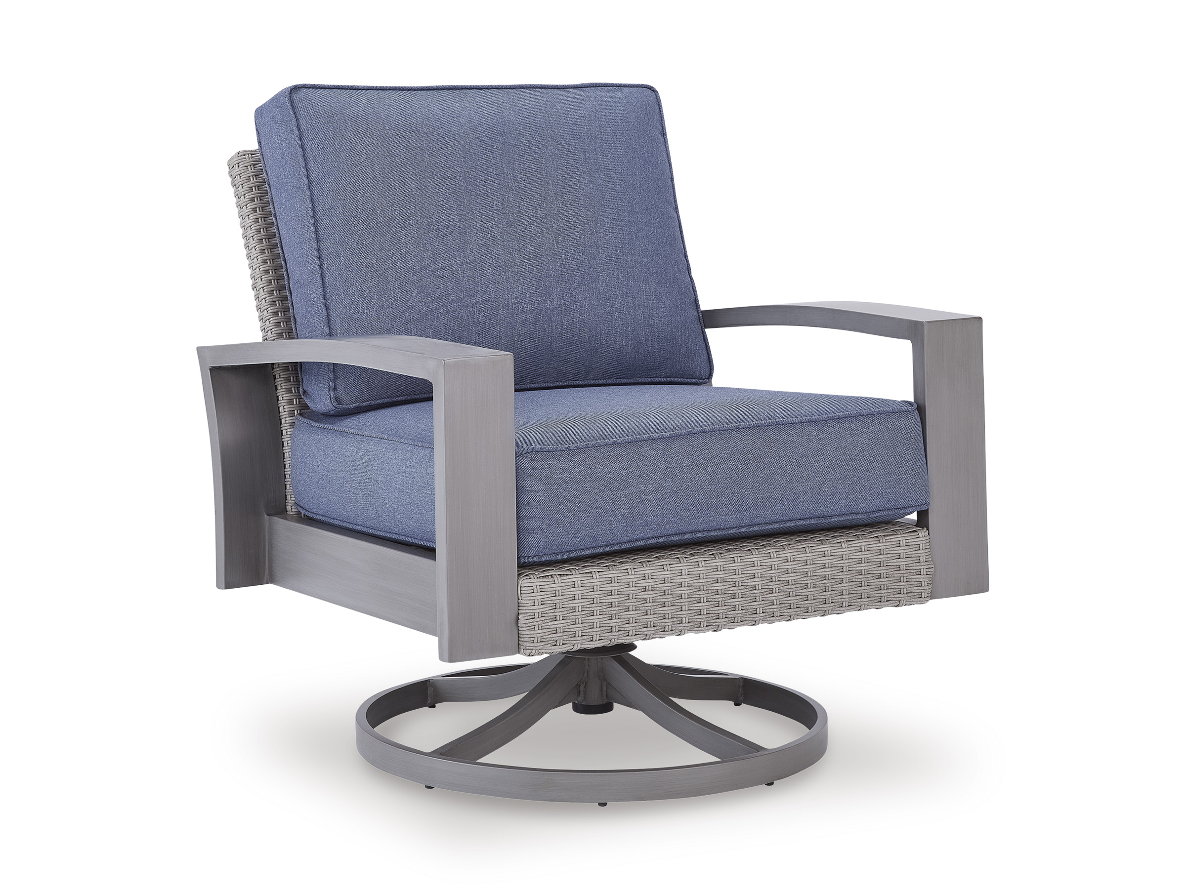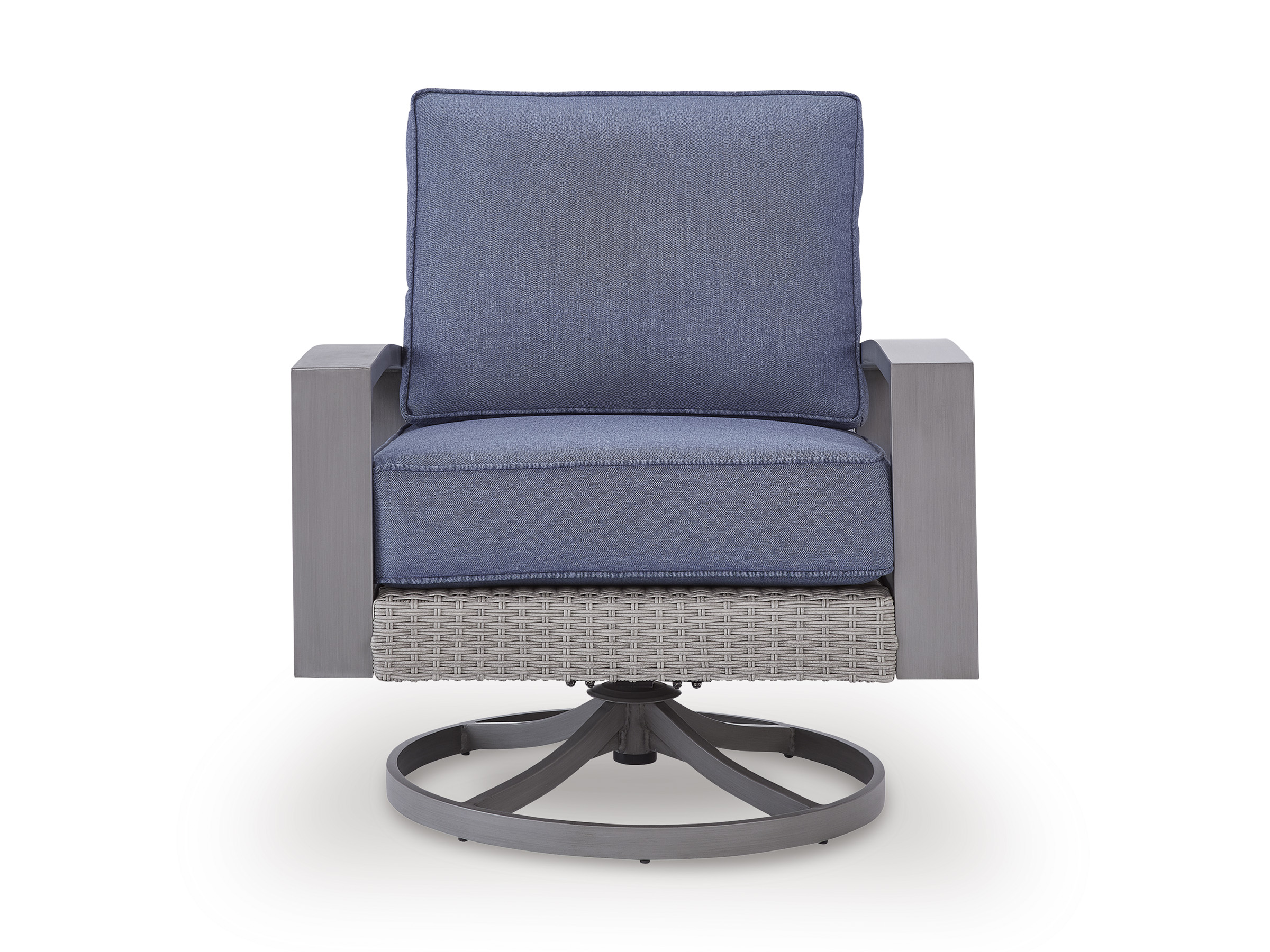 High style crafted for low-maintenance living. Turn your outdoor space into a sweet retreat with this swivel rocker lounge chair. The casually cool piece entices with easy-breezy gray resin wicker over an all-weather aluminum frame, for an upscale aesthetic thatās downright durable. Wrapped in high-performance NuvellaĀ® fabric, the plush cushions are indulgently comfortable yet so easy to maintain. Lounge on.