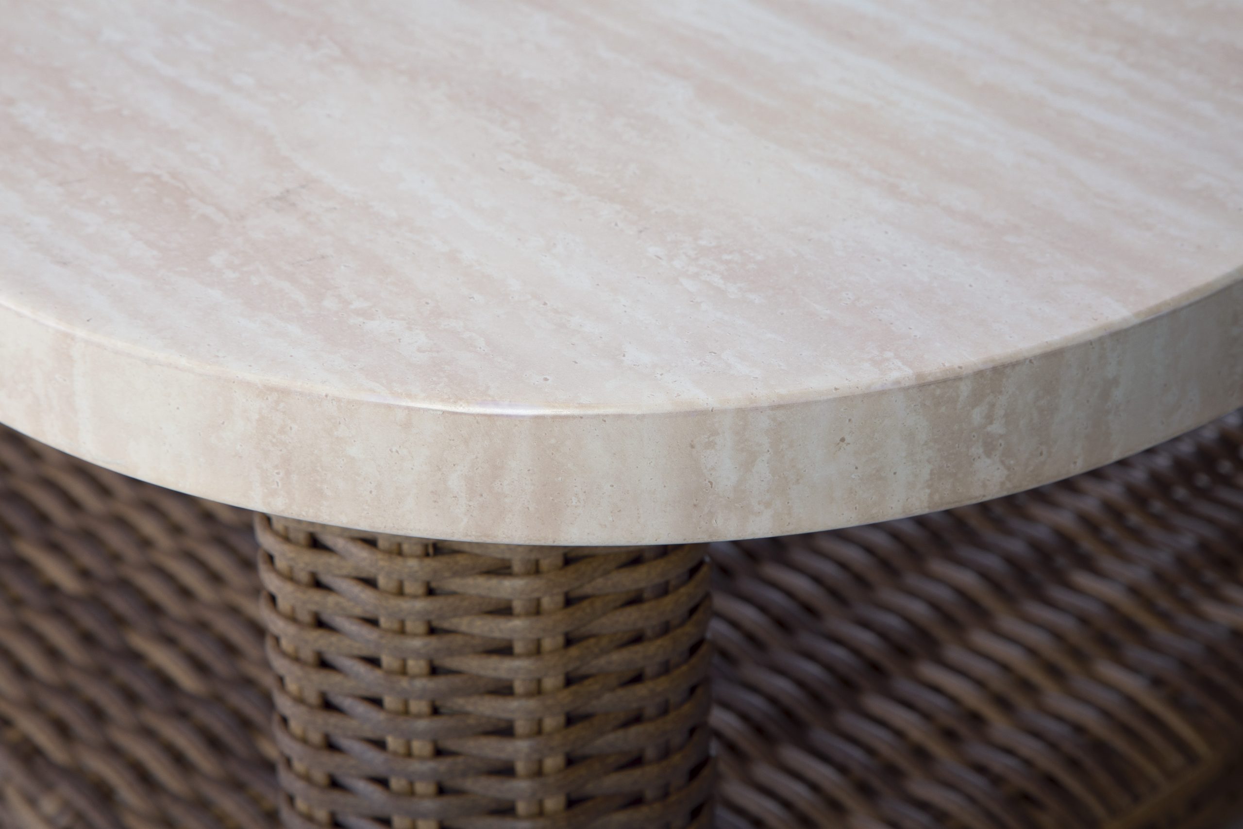 Get back to nature with the relaxed styling of this outdoor coffee table. Crafted with a sturdy aluminum frame and resin wicker, it offers exceptional durability and style. A smooth tabletop with softly rounded edges holds nibbles, sips and more. And don’t forget the handy lower shelf. Sounds like fabulous form and function to us.