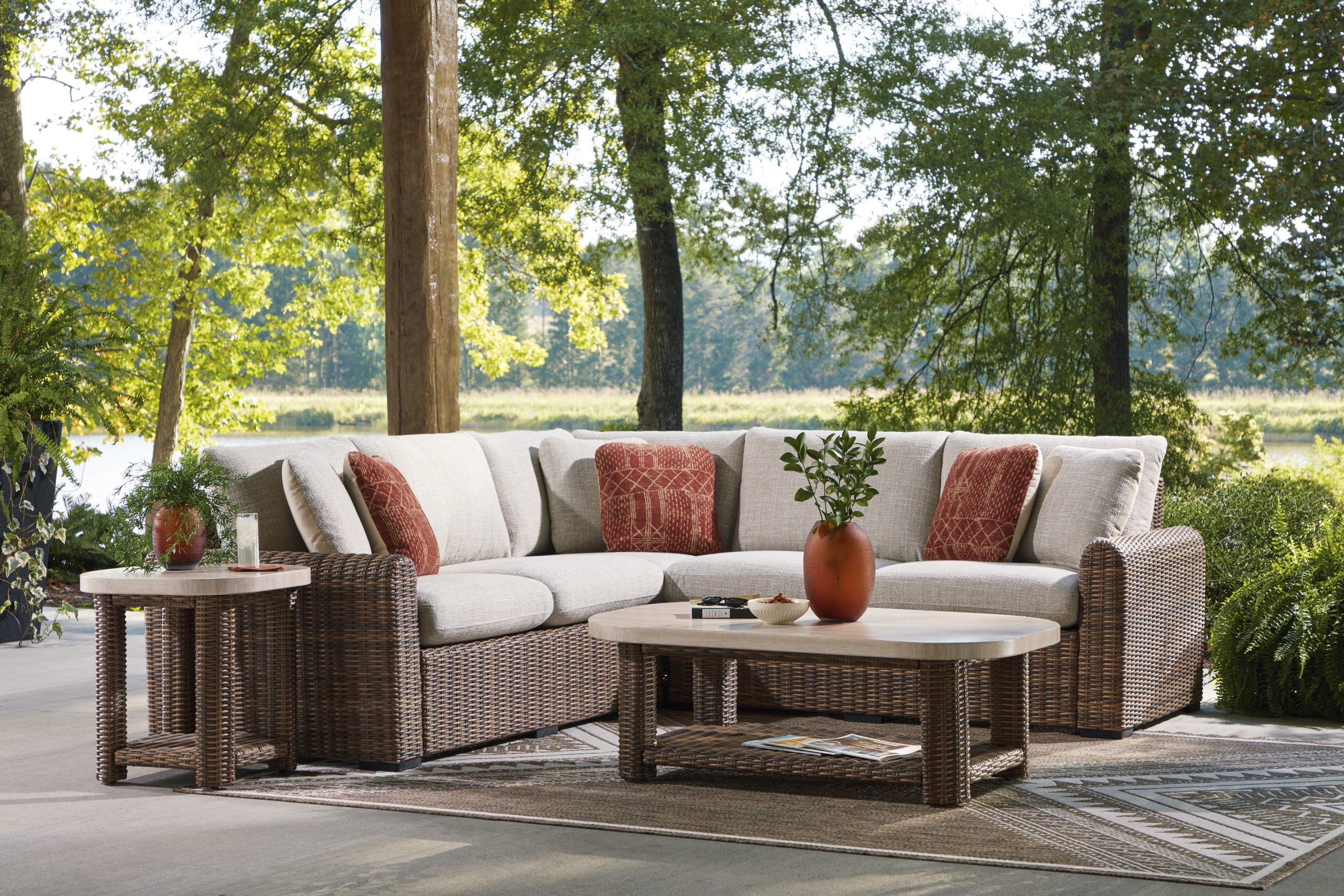 Ashley Furniture Outdoor Cocktail Table Beige Brown