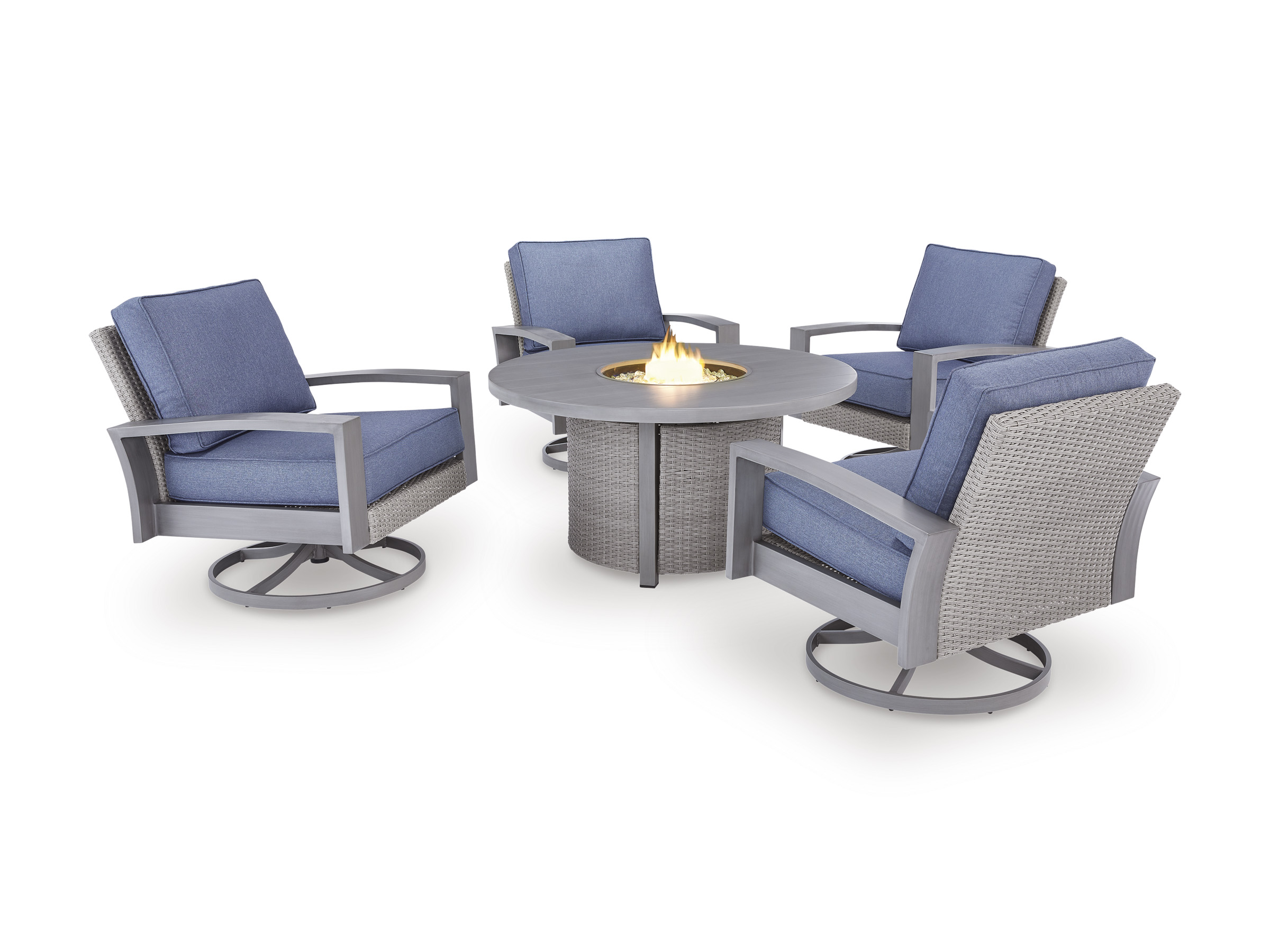 Ashley Furniture Outdoor Fire Pit with 4 Swivel Rockers Grey